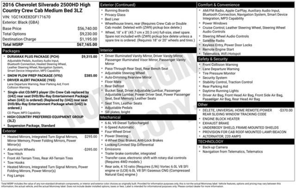 Black 2016 Chevrolet Silverado 2500HD Duramax 6.6L V8 Turbodiesel