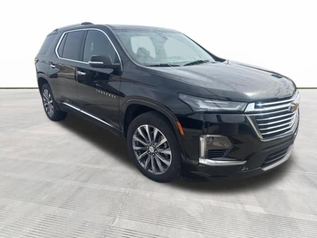 CARFAX One-Owner. Apple CarPlay / Android Auto, Leather Seats, Leather Wrap Steering Wheel. Mosaic Black Metallic 2023 Chevrolet Traverse 3.6L V6 SIDI VVT 17/25 City/Highway MPG