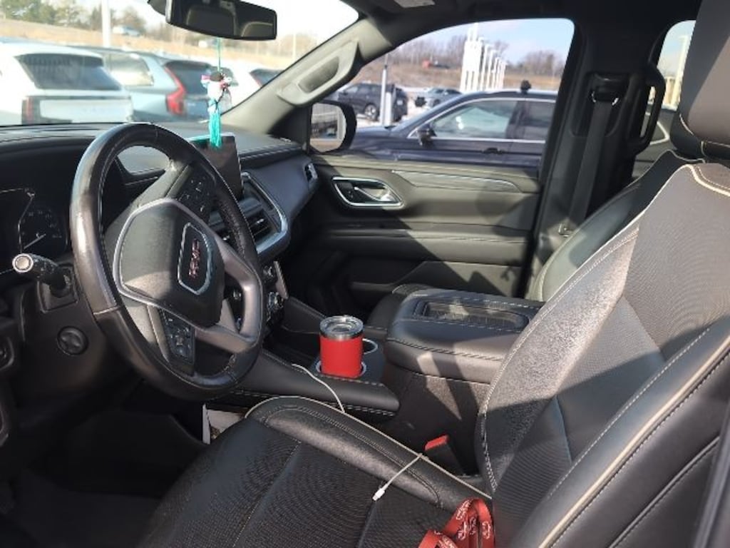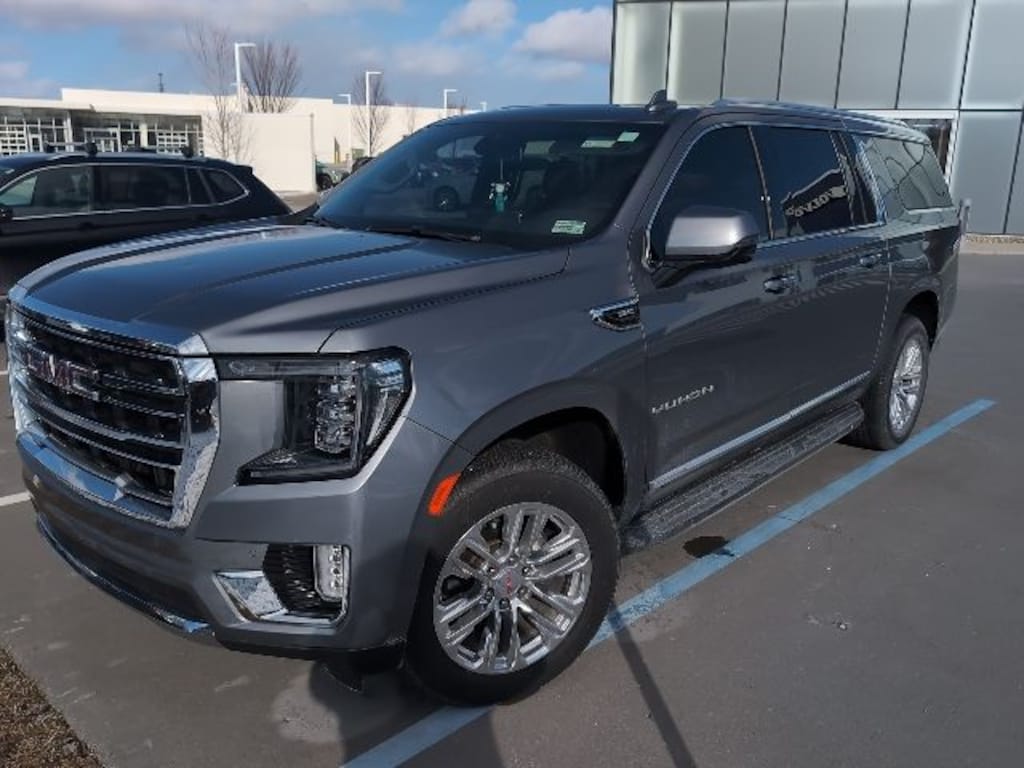 Clean CARFAX. Satin Steel Metallic 2021 GMC Yukon XL SLT 4WD 10-Speed Automatic with Overdrive EcoTec3 5.3L V8 4WD, 12-Way Power Seat Adjusters, 2 Presets For Outside Rearview Mirrors, 2 Presets For Power Driver Seat, 3rd Row 60/40 Power-Folding Split-Bench Seat, Bose 9-Speaker Stereo Audio System Feature, Bright Chrome Bodyside Moldings, Bright Front & Rear Door Sill Plates, Chrome Door Handles w/Body-Color Strip, Dual-Pane Panoramic Power Sunroof, Hands-Free Power Programmable Rear Liftgate, HD Surround Vision, Heated & Ventilated Driver & Front Passenger Seats, Heated 2nd Row Outboard Position Seats, Heated Automatic Steering Wheel, Heated Driver & Front Passenger Seats, Inside Rear-View Auto-Dimming Mirror, Memory seat, Outside Heated Power-Adjustable Mirrors, Power Release 2nd Row 60/40 Split-Folding Bench Seat, Power Tilt & Telescopic Steering Column, Preferred Equipment Group 4SA, Rear Pedestrian Alert, Safety Alert Seat, SLT Luxury Package, SLT Premium Package, Universal Home Remote.
