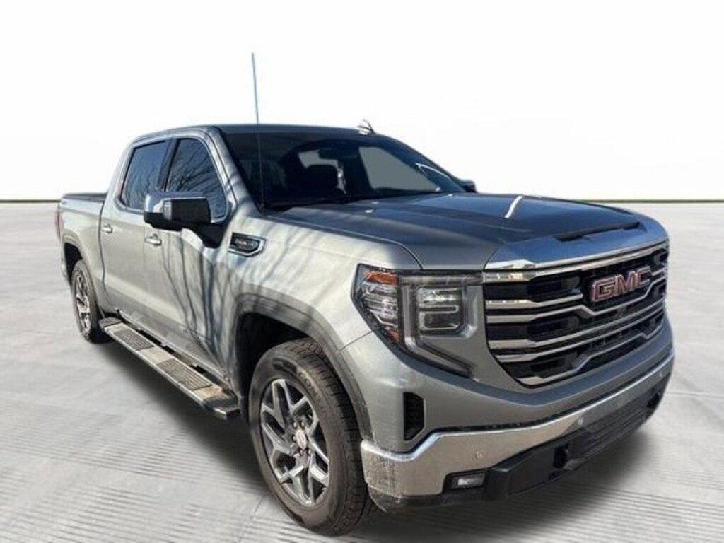 Clean CARFAX. 2023 GMC Sierra 1500 SLT 4WD EcoTec3 5.3L V8 10-Speed Automatic 16/20 City/Highway MPG Sterling Metallic