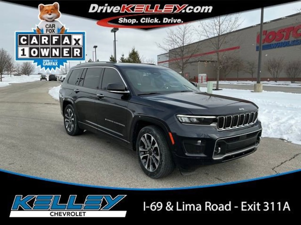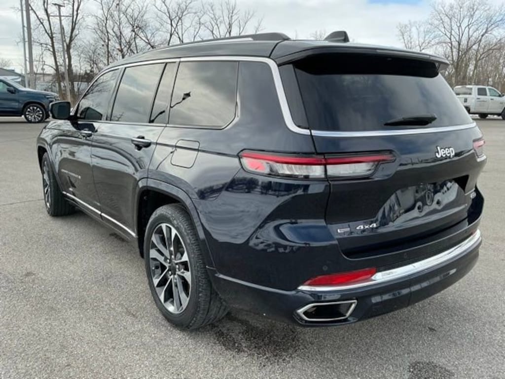CARFAX One-Owner. Apple CarPlay / Android Auto, Backup Camera, Bluetooth, Leather Seats, Leather Wrap Steering Wheel. Midnight Sky 2023 Jeep Grand Cherokee L 3.6L V6 24V VVT 18/25 City/Highway MPG