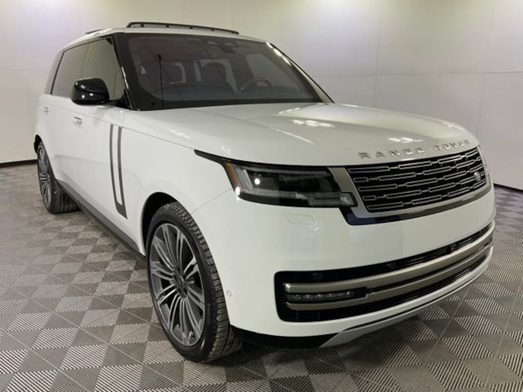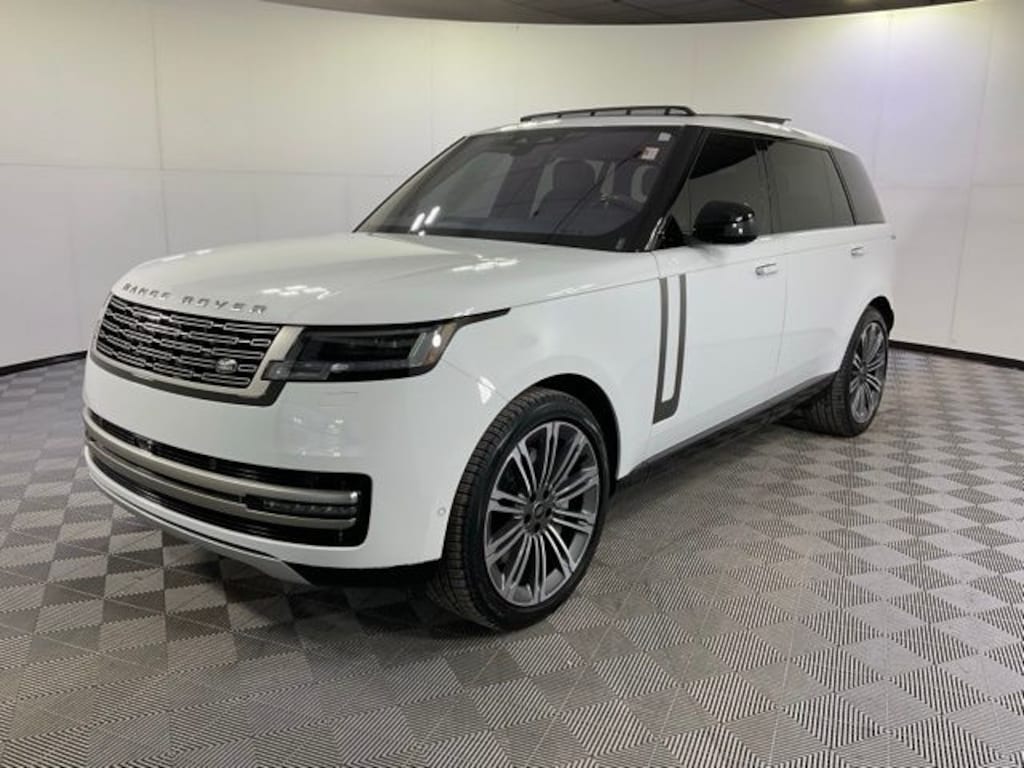 ** 1 Owner! ** V8 Long Wheelbase! ** Fuji White 2023 Land Rover Range Rover SE LWB AWD ZF 8-Speed Automatic 4.4L V8 Twin Turbocharged Ebony/Ebony w/Perforated Windsor Leather Seat Trim, 20-Way Heated/Ventilated Electric Fr Bucket Seats, Ebony Morzine Headlining, Heated front seats, Heated rear seats, Heated Steering Wheel, Memory seat, Power moonroof, Rain sensing wipers, Wheels: 23" Diamond Turned w/Gloss Dk Gry Contrast.