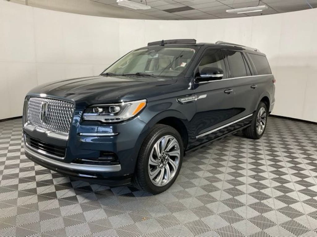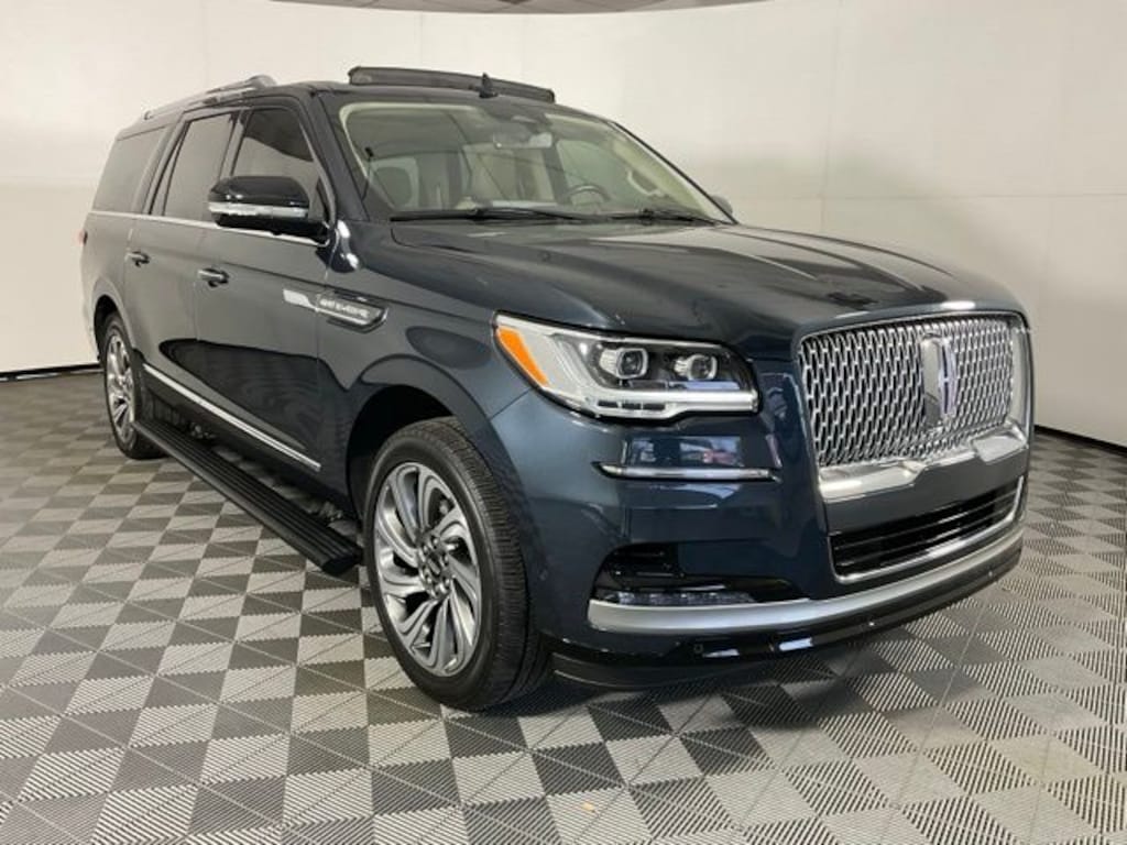 CARFAX One-Owner. Clean CARFAX. Flight Blue Metallic Clearcoat 2024 Lincoln Navigator L Reserve 4WD 10-Speed Automatic V6 ABS brakes, Active Cruise Control, Alloy wheels, Compass, Electronic Stability Control, Equipment Group 201A Reserve I, Exterior Parking Camera Rear, Front Bucket Seats, Front dual zone A/C, Heads-Up Display, Heated door mirrors, Heated front seats, Heated rear seats, Heated steering wheel, Illuminated entry, Low tire pressure warning, Luxury Package, Navigation System, Power Liftgate, Power moonroof: Panoramic Vista Roof, Power passenger seat, Remote keyless entry, Split folding rear seat, Traction control, Ventilated front seats, Wheels: 22" Bright Machined Aluminum.